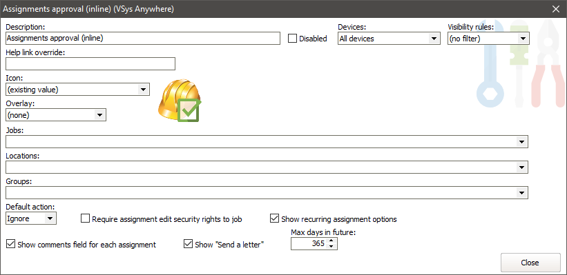 Any filters here limit the tools to these jobs and locations and people in these groups. |