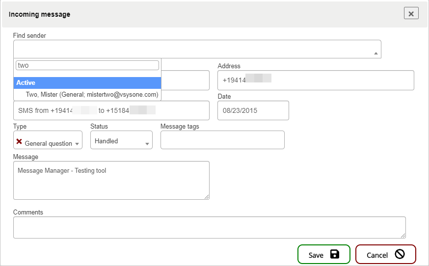 The Incoming Messages Manager is used to handle messages sent to VSys via e-mail, SMS/text message or the "Send a message" tools in VSys Live/VSys Kiosk.