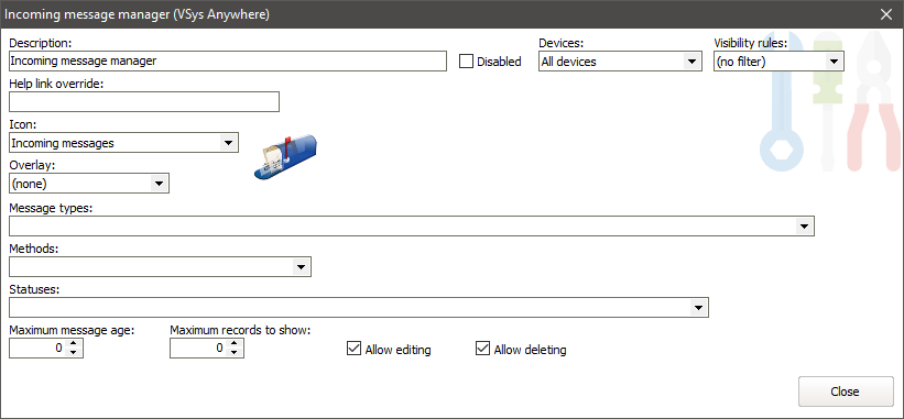 Any filters here limit the tools to these message types, how they came in, and their statuses. |