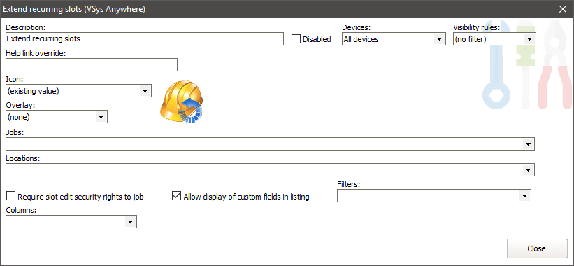 Any filters here limit the tools to these jobs and locations. |