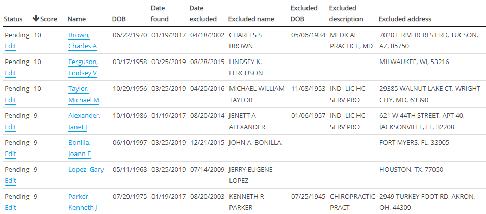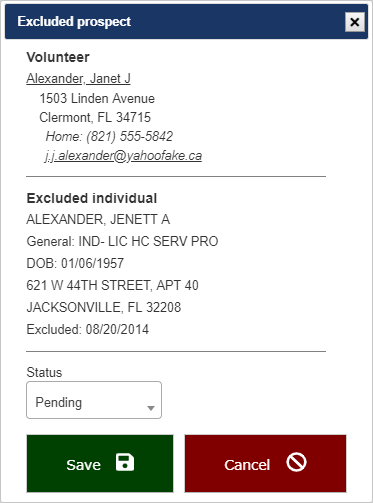 Click on Edit to update the status of the possible match, or on a volunteer's name to open their profile in a new window.