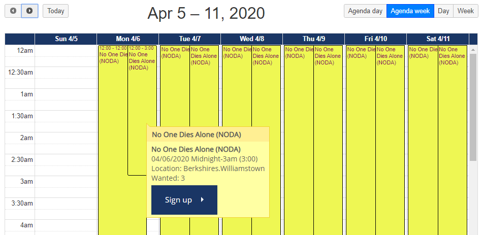 This is the slot coverage version of the Job/opportunity lookup tool, intended primarily for No One Dies Alone (NODA) vigils or other such specialized projects.
