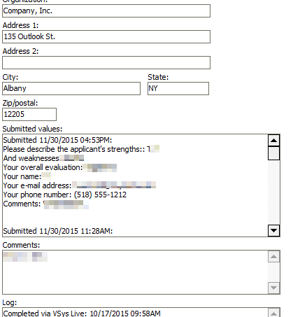 VSys Live has two special fields that it uses: Submitted values and Log. Both of these are read-only, meaning that you can't change their contents.