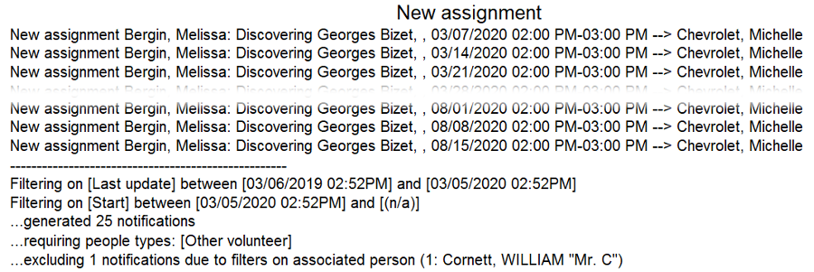 Test your notification events by right-clicking on them and selecting Test this event. VSys will describe the events filters and show you: