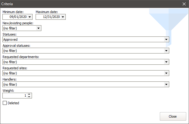 Here we're looking at only Approved applications, and only for the current season. Note that Weight is 1.